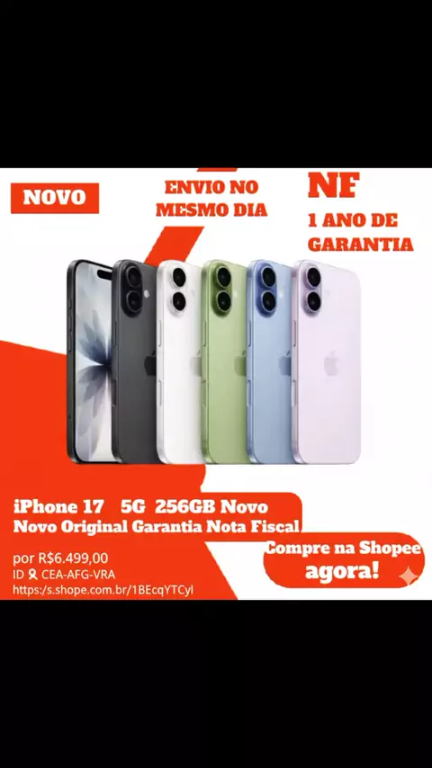 iPhone 17 5G 256GB Novo Original Garantia Nota Fiscal por R$6.499,00 Compre na Shopee agora! Copiar ID 🔍 CEA-AFG-VRA https://s.shopee.com.br/1BEcqYTCyl #iPhone #iphone17 #apple #iOS #SHOPEE