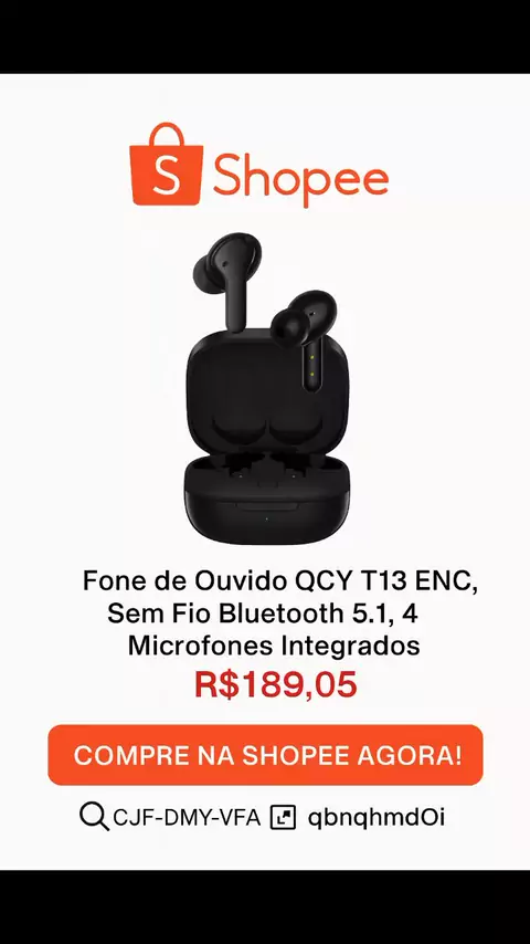 Fone de Ouvido QCY T13 ENC, Sem Fio Bluetooh 5.1, 4 Microfones Integrados por R$189,05 Compre na Shopee agora! https://s.shopee.com.br/qbnqhmdOi #fone #musica #SHOPEE #fy