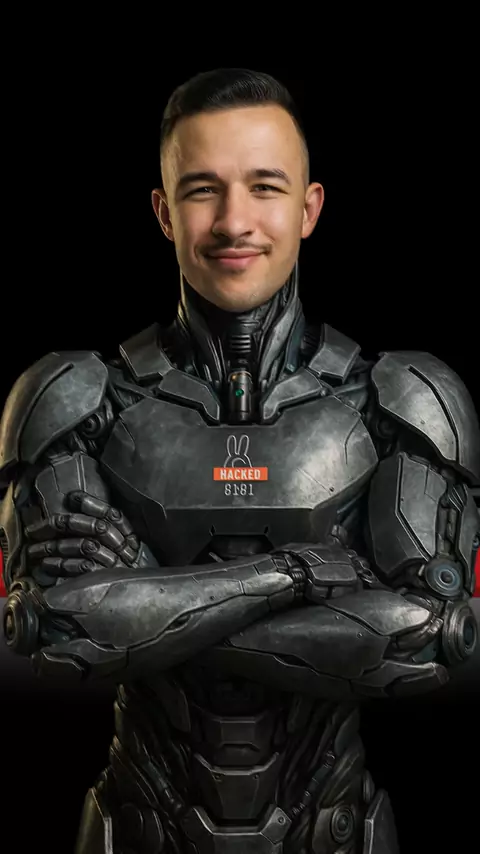 1️⃣ Abra o ChatGPT 2️⃣ Envie sua imagem 3️⃣ Prompt: Retrato hiper-realista de um homem jovem, cabelo curto, de braços cruzados. Ele veste uma armadura futurista metálica estilo ciborgue, com placas de aço detalhadas e robustas. Texturas realistas de metal escovado, articulações tecnológicas e design inspirado em ficção científica. No peito, um adesivo digital escrito “HACKED” em vermelho e branco com símbolo minimalista. Iluminação cinematográfica de estúdio, fundo preto, qualidade ultra-detalh