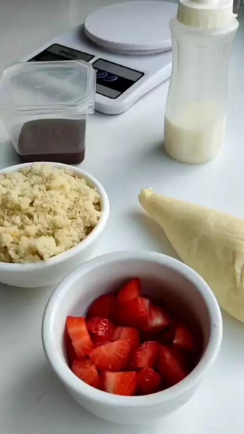 Montagem do maravilhoso bolo no pote de morangos! Proporção perfeita de recheio, massa e morango ✨