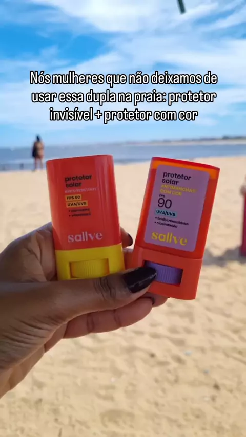 🧡 Eu uso o protetor solar invisível + protetor solar com cor da @sallve para deixar a pele protegida e com cobertura natural na praia e amo 🥰 Produtos usados: • Protetor Solar em Bastão FPS 60 • Protetor Solar com cor em bastão FPS 90 - cor 6 Use meu cupom: 10#EUTODEMAKE #AfiliadoSallve #Sallve #SallveSkincare #protetorsolar