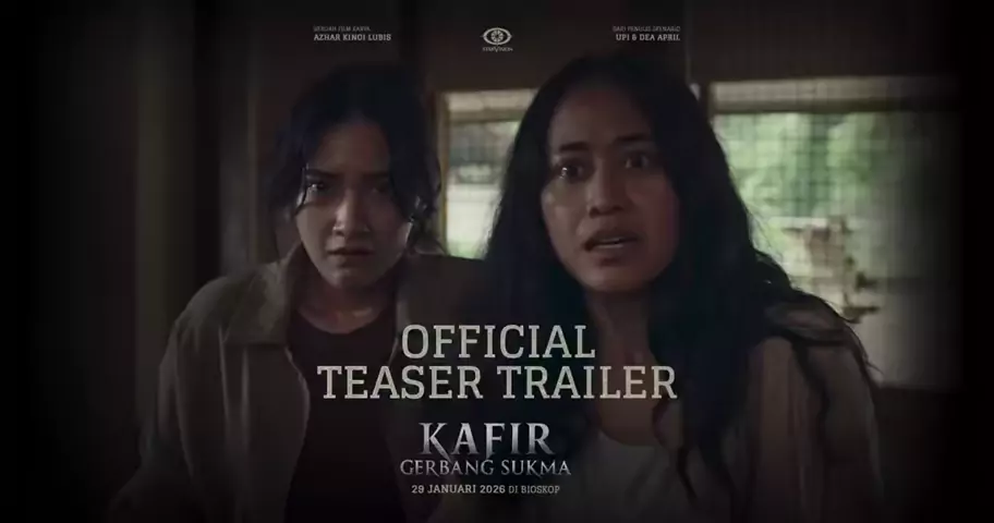 𝘖𝘧𝘧𝘪𝘤𝘪𝘢𝘭 𝘛𝘦𝘢𝘴𝘦𝘳 𝘛𝘳𝘢𝘪𝘭𝘦𝘳 𝐊𝐀𝐅𝐈𝐑, 𝐆𝐞𝐫𝐛𝐚𝐧𝐠 𝐒𝐮𝐤𝐦𝐚.\n\nDendam 8 tahun lalu masih mengancam Sri @_putriayudya beserta anaknya Dina @nadyaarina dan Andi @azofrangga yang sudah menikah dengan Rani @asha.assuncao 🖤\n\nBersiaplah, karena Gerbang Sukma akan terbuka dan dendam yang belum selesai datang merenggut korban!\n\nPersembahan @starvisionplus karya sutradara @kinoizky dari penulis skenario @upirocks & @ideapril\n\n𝐊𝐀𝐅𝐈𝐑, 𝐆𝐞𝐫𝐛𝐚𝐧𝐠 𝐒𝐮𝐤𝐦𝐚 tayang 𝟐...