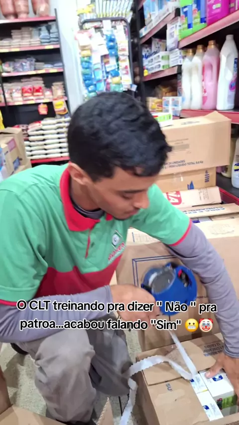 O CLT treinando pra dizer '' Não " pra patroa kkkk acabou falando " Sim " sem perceber kkkk Será como que tá a cabeça do trabalhador no fim de ano ?? 🤡😬😂 . #Mercado #2025internationalshortvideocompetition #humor #foryoupage #meme