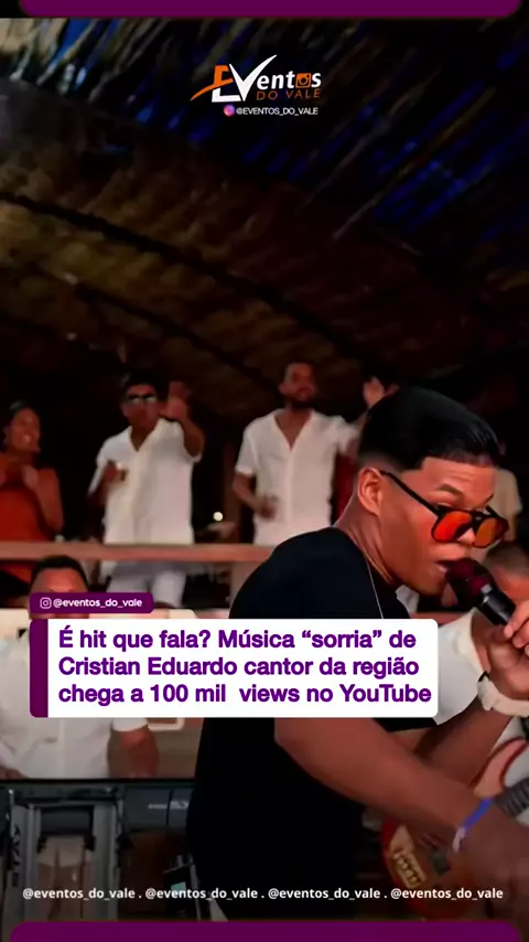 É hit que fala? A música “Sorria”, do cantor @cristian.eduardoof , alcançou a marca de 100 mil views no ! 👏🔥 Mais um talento da região mostrando o poder da nossa música! 💥 🟡 Já ouviu esse som? Conta aí o que achou! 👇 #CristianEduardo #Sorria #MúsicaNova #HitDoVale #EventosDoVale