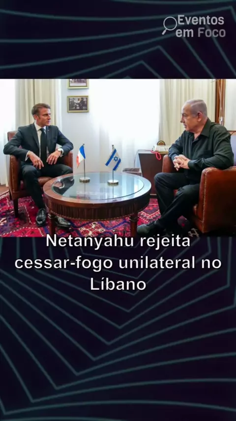 Netanyahu rejeita cessar-fogo unilateral no Líbano #israel #líbano #hezbollah #netanyahu #cessarfogo O primeiro-ministro israelense Benjamin Netanyahu disse ao presidente francês Emmanuel Macron que se opõe a um cessar-fogo unilateral no conflito com o Hezbollah no Líbano, citando preocupações com a segurança do norte de Israel. As tensões entre Israel e o Hezbollah aumentaram nos últimos meses.