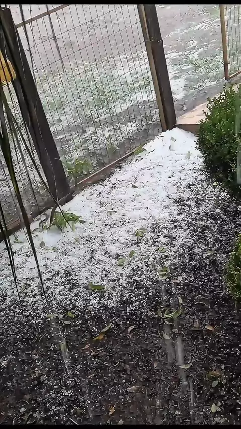 GRANIZO AGORA⛈️🚨⚠️!!! Nesta tarde de quarta feira, uma chuva forte com queda de #granizo é registrado na cidade de #Saltodojacuí , no estado do Rio grande do sul. 💨🌧️#Vento forte com #chuva ocorreu na cidade, As pedras de gelo que caíram foi em grande quantidade, mas sem registros de destruição.