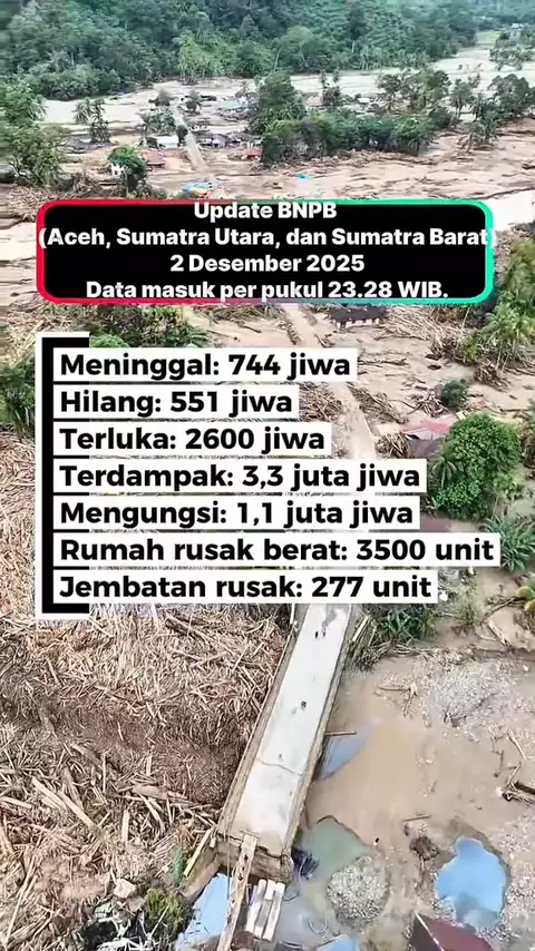 Update BNPB: Korban Meninggal Bencana Sumatera Bertambah Jadi 744 Orang #Update BNPB: Korban Meninggal Bencana Sumatera Bertambah Jadi 744 Orang #banjirbandang #longsor # @SnackVideo Official(O150000033094608)