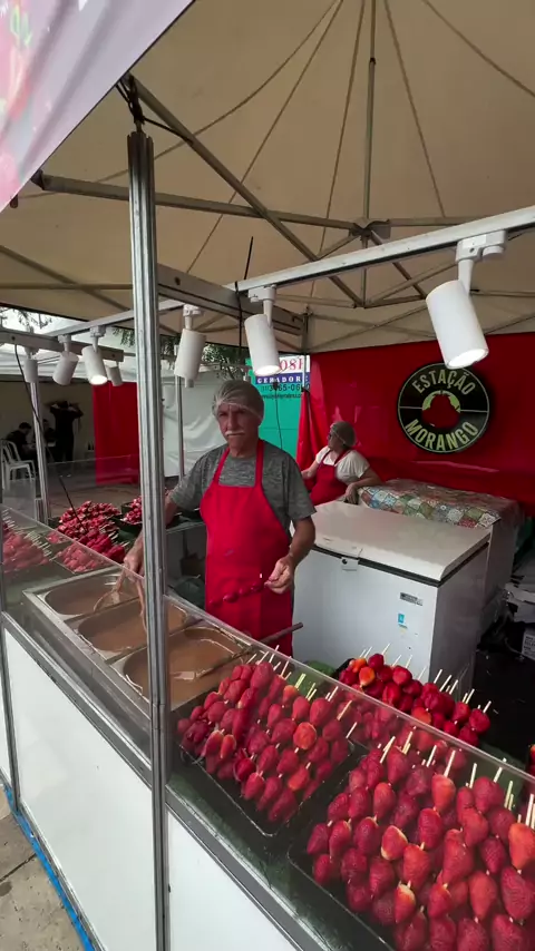 Provando espetinho de morango πŸ“πŸ“ #morango #comidaderua #espetinho #comidadefeira