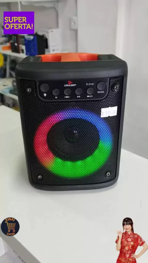 CAIXA DE SOM BLUETOOTH PORTÁTIL COM LED RGB FUNÇÃO RADIO, ENTRADA USB.SD.AUX.MIC#caixa#som #usb#Bluetooth