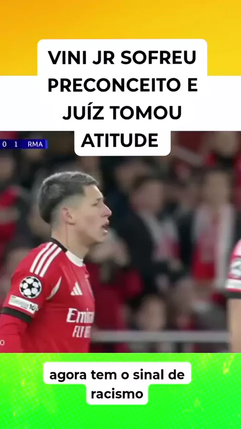 Vini Jr. denuncia racismo, e árbitro aciona protocolo após golaço contra o Benfica na Champions League. Após reclamação de jogadores do time português contra comemoração do brasileiro, astro afirma ter sido alvo de ato de preconceito #RealMadri #vinijr #Futebol #gol #polemica
