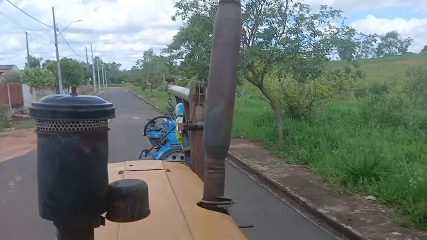 motor de opala na empilhadeira levando pro lugar com o trator guincho improvisado