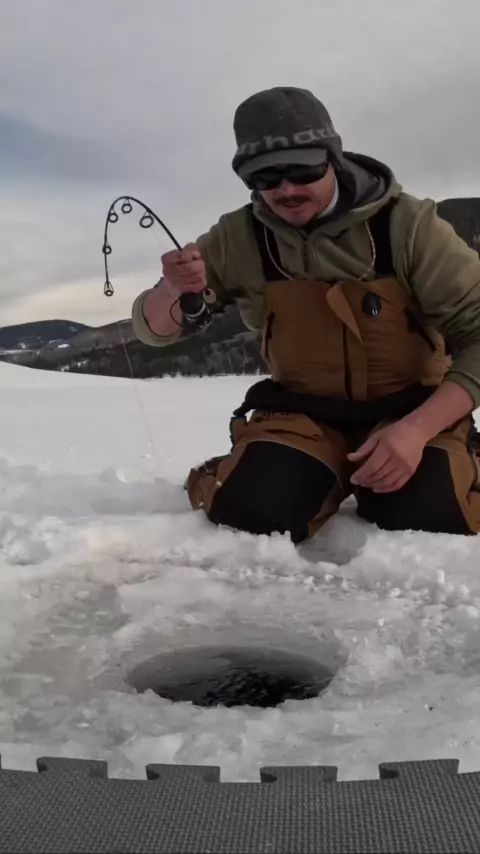 Todos os quilômetros percorridos e o tempo no gelo finalmente valeram a pena com uma beleza absoluta! Dizer que eu estava animado é um eufemismo. #coloradoicefishing #laketrout #catchandrelease