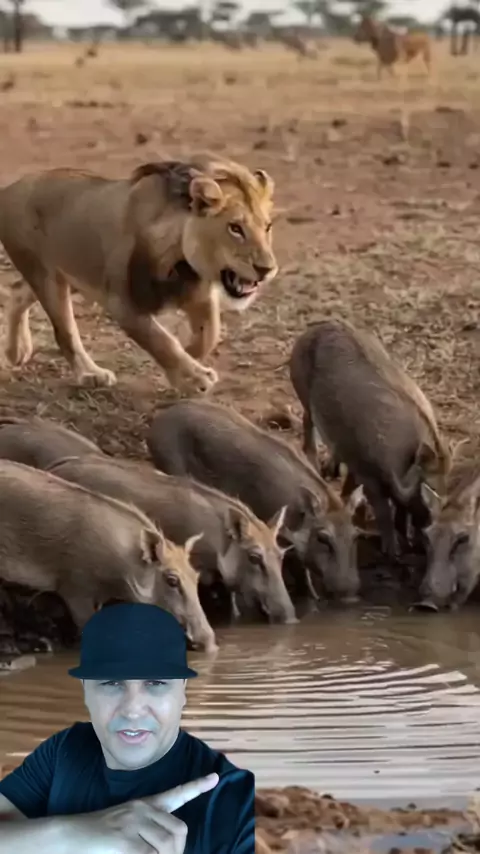 Leão e Javalis na selva