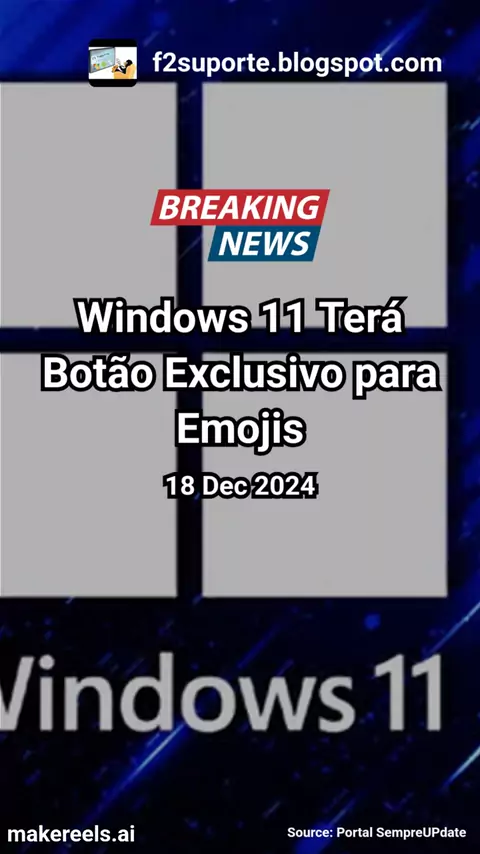 Windows 11 Terá Botão Exclusivo para Emojis O Windows 11 receberá um botão exclusivo para facilitar o acesso a emojis diretamente na barra de tarefas. A novidade promete otimizar a experiência de usuários que utilizam emoticons com frequência, trazendo mais praticidade e rapidez para expressar emoções. 😄🎉 #Windows11 #EmojiButton #Praticidade #Tecnologia #NovidadeMicrosoft