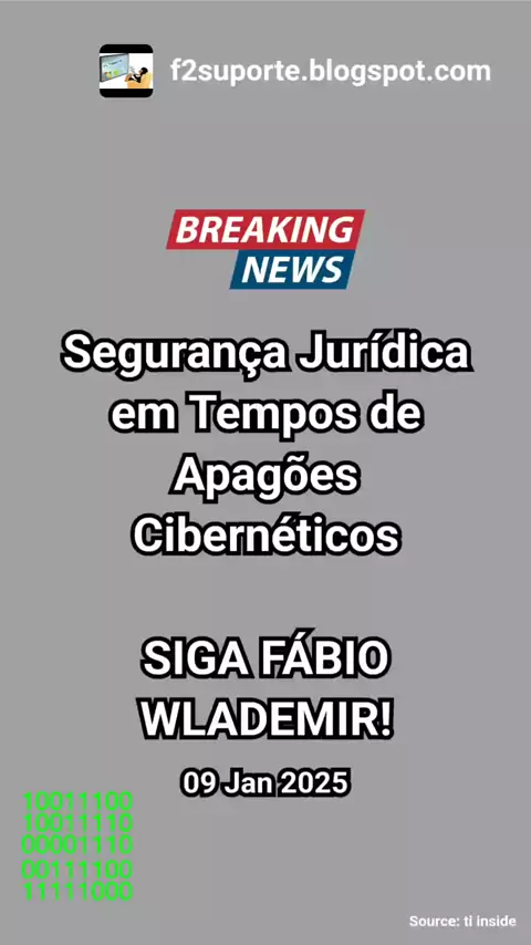 Segurança Jurídica em Tempos de Apagões Cibernéticos: Como se Proteger! 🌐🔐* Descubra como garantir a segurança jurídica em meio a apagões cibernéticos com as dicas de Fábio Wlademir! 🌟💻 Não perca essas orientações essenciais para proteger seus dados e negócios em tempos de instabilidade digital. 💡🔍 👉 *SIGA FÁBIO WLADEMIR!* 👉 *Siga-nos para mais dicas!* #SegurançaJurídica #ApagõesCibernéticos #FabioWlademir #ProteçãoDeDados