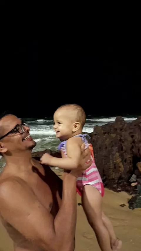 A brincadeira com papai #praia #filhos #diversão #papai #nenem