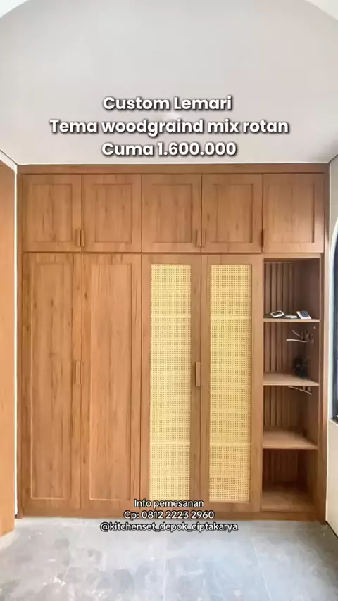 Custom Lemari pakaian tema woodgraind mix rotan cuma 1.6 juta#wardrobe#lemari#lemaripakaian#rotan#foyer#makeover#rumahminimalis