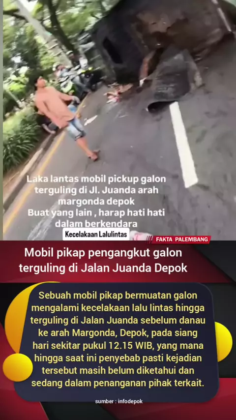 Mobil pikap pengangkut galon terguling di Jalan Juanda Depok #mobil #terbalik #laka
