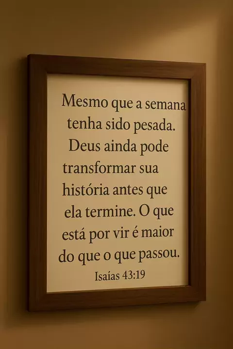 Mesmo que a semana tenha sido difícil, Deus ainda pode transformar sua história antes que ela acabe. O que vem pela frente é maior do que tudo o que já passou! 🙌✨ #DeusNoControle #MensagemDeFe #Isaías4319 #EsperançaEmDeus #PalavraQueTransforma