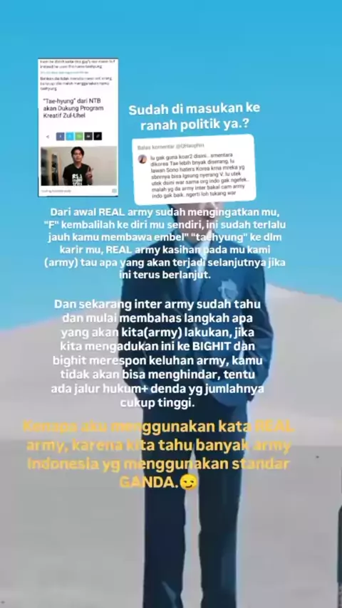 Menanggapi pada @QHaophin(O150001451639160) lawak lu udah jelas² yg menjadikan Taehyung ajang politik di indo malah suruh lawan heters Korea 😭😭😭 si tolol lagi beraksi 🤣🤣🤣🤪🤪🤪