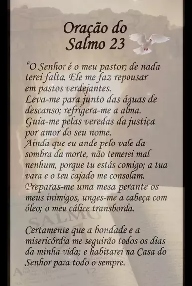 🙏 Oração do Salmo 23 – Paz, Proteção e Confiança em Deus Ouça esta poderosa oração do Bíblia Salmo 23 e entregue sua vida nas mãos do Senhor. Deus é nosso pastor e nada nos faltará. Receba paz, proteção e descanso para o coração. Palavras-chave: salmo 23, oração salmo 23, oração poderosa, oração de fé, palavra de Deus, oração da noite, oração da manhã, salmo 23 completo, Deus é meu pastor, paz, proteção divina, oração para dormir. #DEUS #fé #JESUS #Gospel #oração