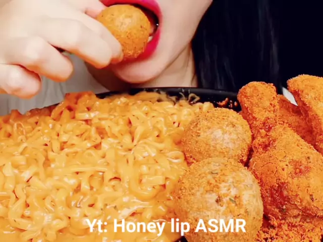 mukbang samyang buldak dan ayam pedas (yt: honey lip ASMR) #ASMRFOOD #mukbangasmr #keluargasnack