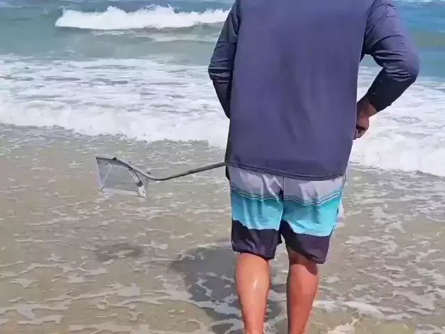 Memancing di luar ruangan: Nelayan menggunakan jaring untuk menyapu kutu pasir, dan kemudian menggunakan kutu pasir untuk menangkap ikan laut raksasa! # Lihatlah laut # Memancing di luar ruangan