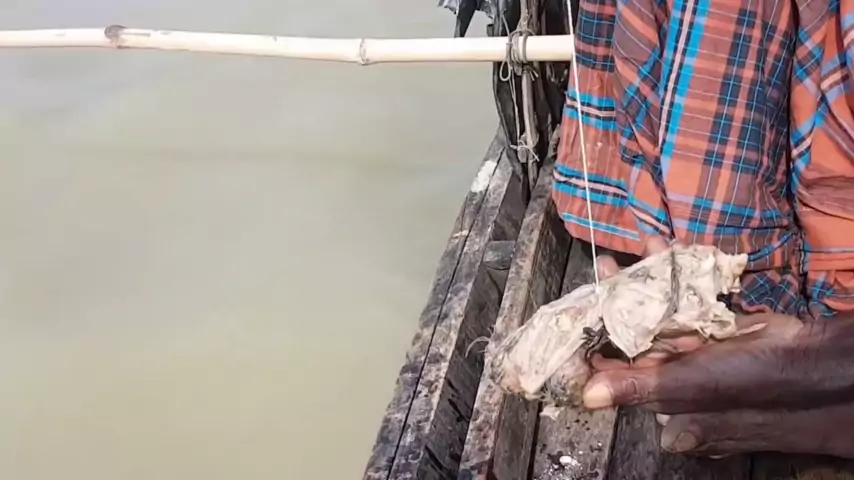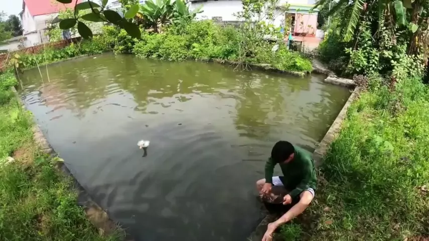 Memancing di luar ruangan: Anak itu menggunakan ayam utuh sebagai umpan hanya untuk menangkap ikan lele hitam besar