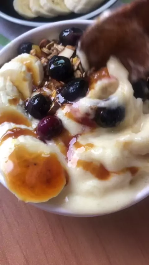 Cremoso de Cupuaçu Receita refrescante para o verão com sensação de quero mais Uma ótima opção para um lanche saudável 3 bananas congeladas 2 polpas de cupuaçu Granola, mirtilo, banana e melado #verao #cupuacu #sorvetecaseiro #sorvetedecupuacu #receitadesorvetesaudavel