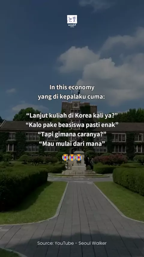 Mau kuliah di Korea tapi takut biaya kuliah dan hidup yang mahal? Belum lagi tiket pesawat yang bikin pusing! 😩 Jangan khawatir, ada banyak beasiswa yang bisa bikin kamu kuliah GRATIS di Korea, lengkap dengan tunjangan hidup dan tiket pesawat lho! ✈️✨ Masalahnya, gak semua orang tau cara daftar dan persiapan diri dengan benar. Jadi, jangan sampai kesempatan ini lewat begitu saja! Yuk, pelajari strategi dapetin beasiswa ke Korea dengan download e-book dari @noonbitacademy ini!💙 #kuliahkorea #b...