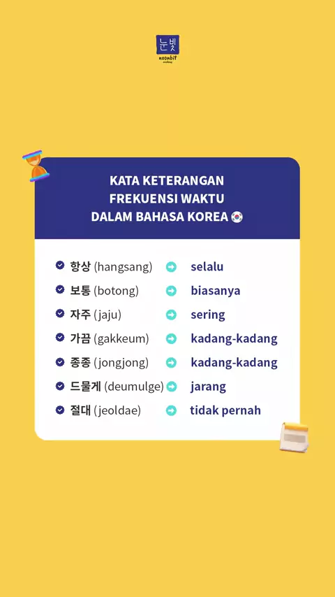 Siapa yang sering denger kata-kata ini tapi nggak tau apa bedanya? Kata keterangan frekuensi ini sering banget muncul di percakapan sehari-hari, dialog drama & variety show, bahkan di soal TOPIK, lho! — Kalau mau bisa pakai dengan struktur kalimat yang bener, belajarnya harus runtut! 📚 Yuk belajar bareng di E-Course Bahasa Korea Noonbit Academy ✅ VIDEO-ON-DEMAND bebas nonton kapan pun ✅ Jago Bakor level 1-4 untuk orang sibuk ✅ Total 32x pertemuan ✅ BONUS 4x kelas bersama native tutor ✅ Kelas ...