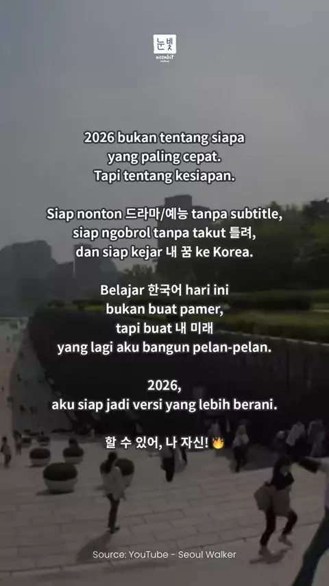 Kadang yang kamu punya cuma rasa penasaran dan hati yang nggak berhenti bilang “Aku pengin ke Korea.” Itu udah cukup jadi alasan buat mulai. Belajar bahasa Korea nggak harus nunggu waktu luang atau keadaan ideal. Kadang cukup 10 menit per hari, yang penting konsisten dan nggak nyerah. ✨ Mulai aja dulu bareng Kelas Privat dari @noonbitacademy. Noonbit Academy siap temenin kamu lewat Regular Class, belajar dari nol sampai intermediate. #BelajarBahasaKorea #MimpiKeKorea #KelasBahasaKorea #NoonbitA...
