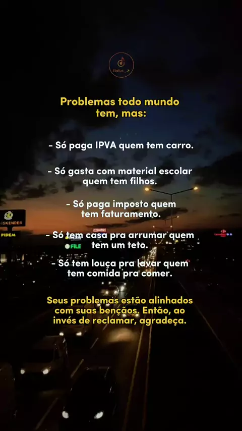 Seus problemas estão alinhados com suas bênçãos! Então só Agradeça!! #status #bencaos #agradeca #naoreclame #reflexao