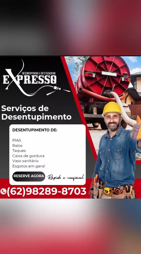 A Expresso Desentupidora está pronta pra te atender! ✅ Sem sujeira ✅ Atendimento imediato ✅ Profissionais qualificados ✅ Equipamentos modernos Atendemos pias, ralos, vasos sanitários, esgotos e muito mais. Chama no WhatsApp agora e resolva o problema de forma rápida e segura!
