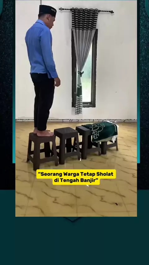 Seorang Warga Tetap Sholat Meski Rumahnya Kebanjiran #islam #religi #sholat #snackvideo #kuasaallahswt