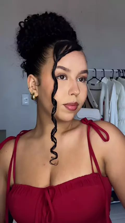 Coque com penteado lateral 🎀 Usaria? #penteadosfaceis #penteado #cachos #cacheadas #hairstyle #cabelocacheado #penteados #