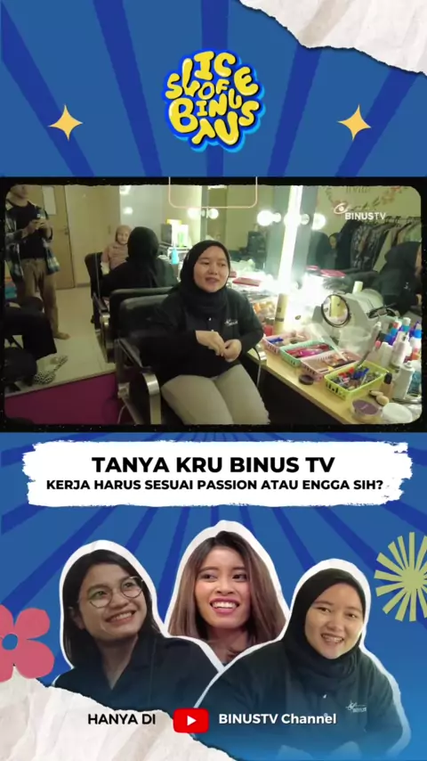 Smart Viewers, siapa nih yang mulai sadar kalau salah jurusan? Atau yang jurusan kuliahnya beda dengan pekerjaannya sekarang? Ternyata banyak lho yang seperti itu, dari yang bekerja sesuai passion, yang mencari kenyamanan, sampai yang emang fokus mengumpulkan pundi-pundi harta kartun nih, Smart Viewers. Kalau kru BINUS TV termasuk yang mana nih ya? Saksikan vlog selengkapnya hanya di BINUSTV Channel dalam program #SLICEOFBINUSTV ! #smartviewers #iamsmartviewer #digitalcontentcreator #...