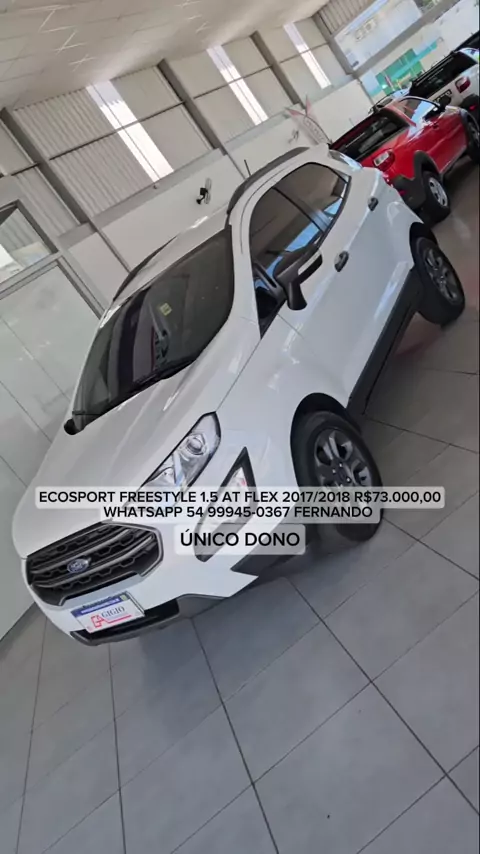Ecosport FreeStyle 1.5 AT Flex 👍 2017/2018 ❤️ 💰 R$73.000,00 😍 Completa 😀 Único Dono ⚙️ Câmbio Automático 🖼️ Multimídia com Câmera de Ré e GPS 🔒 Air Bags Frontais, Laterais e Cortina 🧲 Sensor de Estacionamento Traseiro 🏎️ Controle de Tração e Estabilidade 🤩 Apenas 75 mil km 🔧 Revisada ✨ Impecável 🚗 Recebemos troca 🏍️ 🌐 www.gigioautomoveis.com.br 🗺️ Av. 7 de Setembro, 700, Centro de Tapejara RS ☎ 54 3344-1400 📱Eduardo 54 9 9982-4507 📱Fernando 54 9 9945-0367