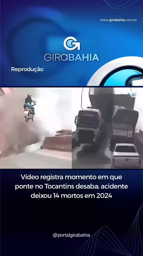 Imagens gravadas por câmeras de monitoramento de um caminhão registraram o momento exato do desabamento da ponte Juscelino Kubitschek, na rodovia TO-226, divisa entre Tocantins e Maranhão. O vídeo mostra veículos caindo sobre o Rio Tocantins em 22 de dezembro de 2024. 14 pessoas morreram. As imagens foram disponibilizadas em uma postagem da advogada Melissa Fachinello, que representa a transportadora proprietária do caminhão e atua na defesa de familiares das vítimas.