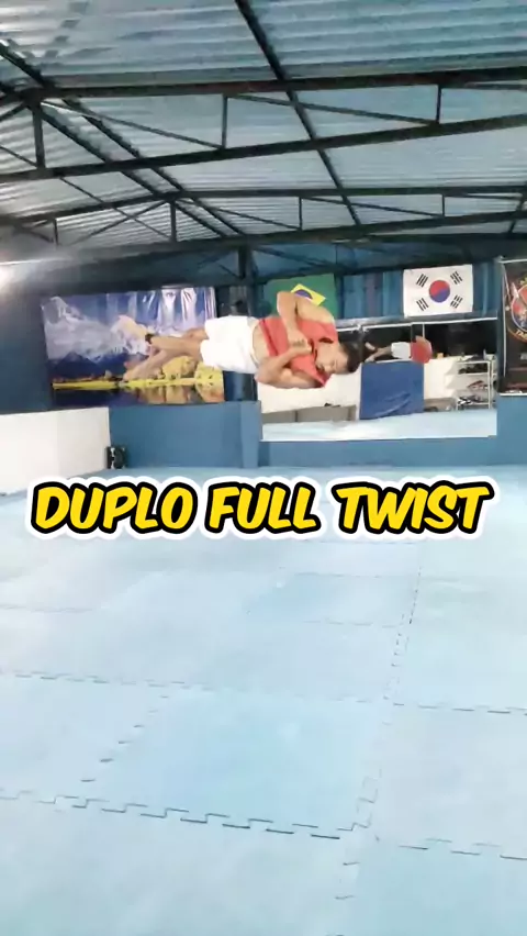 Duplo full twist do dia ta pago! #twist #kwaibrasil #saltosmortais #acrobacias