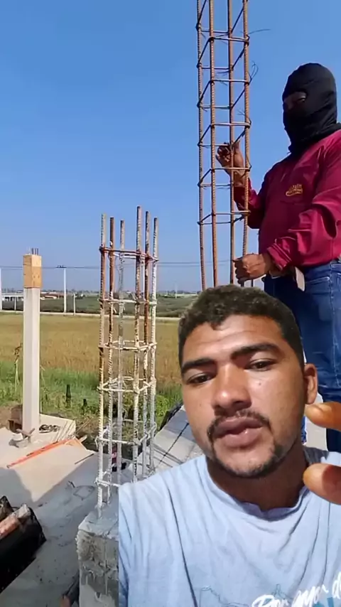 Veja só eles tentando encaixar a coluna dentro da outra. #sejacriador #obras #pedreiro