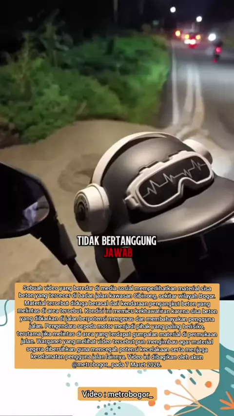 Sisa Beton Berserakan di Jalan Cibinong, Berpotensi Membahayakan Pengendara ‼️