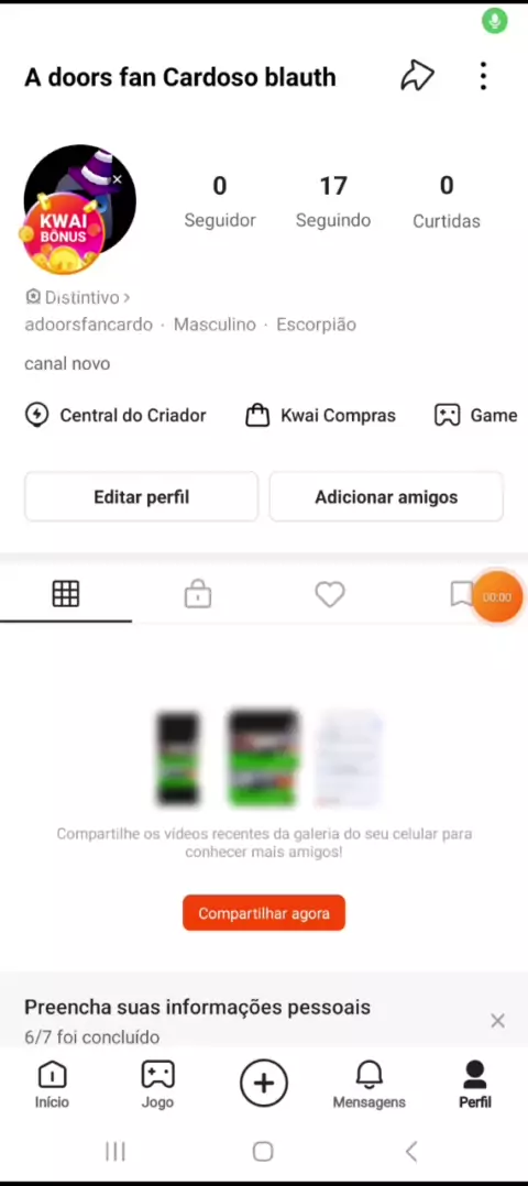 criei uma nova conta