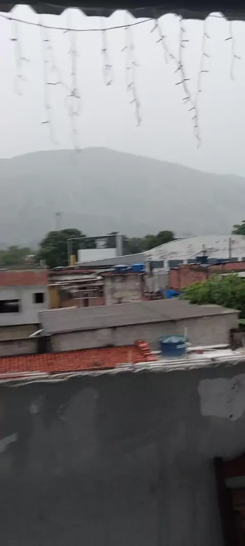 chuvas intensa em Nova Iguaçu, formando cachoeira na pedreira da rampa do asa delta vulcao