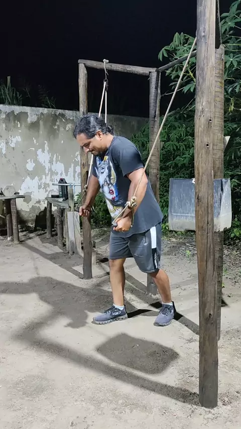 Treino de costas completo, com equipamentos que EU MESMO construí. Quem treina aqui, sente na pele — madeira, técnica e disciplina 💪 Não tem desculpa. Tem treino. Tem foco. Tem evolução. 🔥 Treino raiz. Resultado real. ➡️ Me segue pra mais vídeos com equipamentos caseiros que entregam resultado pesado! #treinopesado #treinoemcasa #costas #hipertrofia #barrafixa