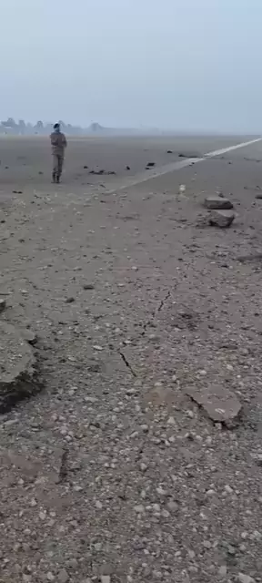 🇮🇳💥🇵🇰 Pista do Aeroporto Rahim Yar Khan no Paquistão após ataque da Força Aérea Indiana — é visível uma grande cratera. t.me/sofia_smirnov74