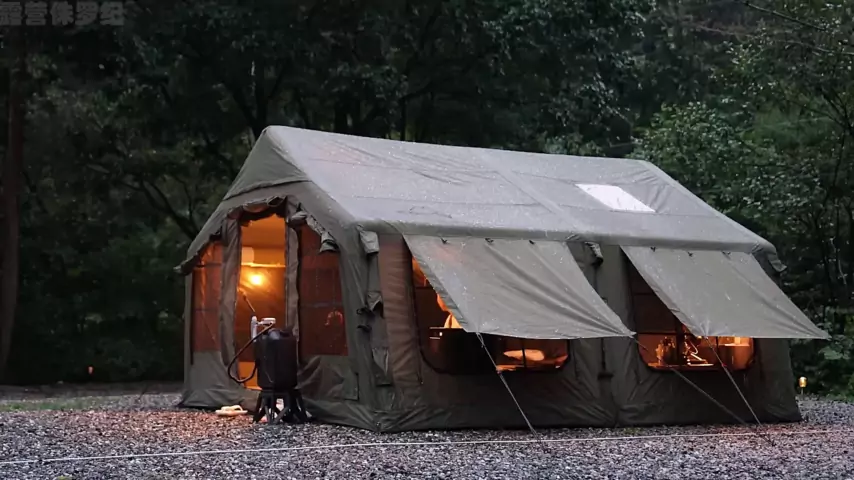 Acampamento chuvoso imersivo, grande barraca inflável acampando na chuva # chuva imersiva camping # outdoor camping # outono inverno camping
