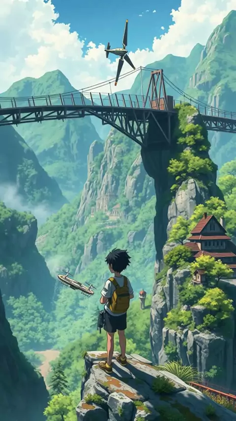Um jovem inventor enfrenta desafios naturais e sociais para criar uma ponte inovadora que transforma sua vila. Junte-se a Kaito e descubra como a criatividade pode mudar o futuro! #solarpunk #IA #inovação #sustentabilidade #natureza