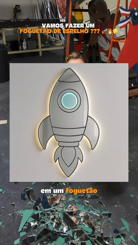 FOGUETÃO DE ESPELHOO (EP 01) 🚀🚀🔥🔥 Essa foguete começou quando a @arte_screen me apresentou essa película MARAVILHOSA que brilha no escuro, então pensei “bora transformar em um foguetão” !!! #foguete #vidraceiro #espelho #espelhos #arte