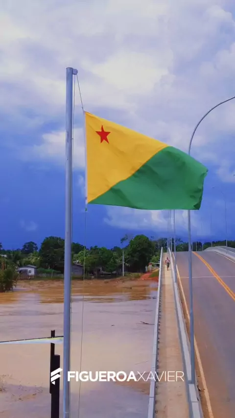 Trecho do Hino Acreano na voz de Raquel Ribera - Bandeira do Acre sob a ponte Frei Paolino Baldassari, em Sena Madureira - Acre. #senamadureira #acre #brasil #hinoacreano #riobranco